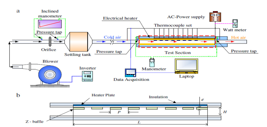 Fig. 13. (a) Schematic diagrams of experimental apparatus, (b) test section [54]